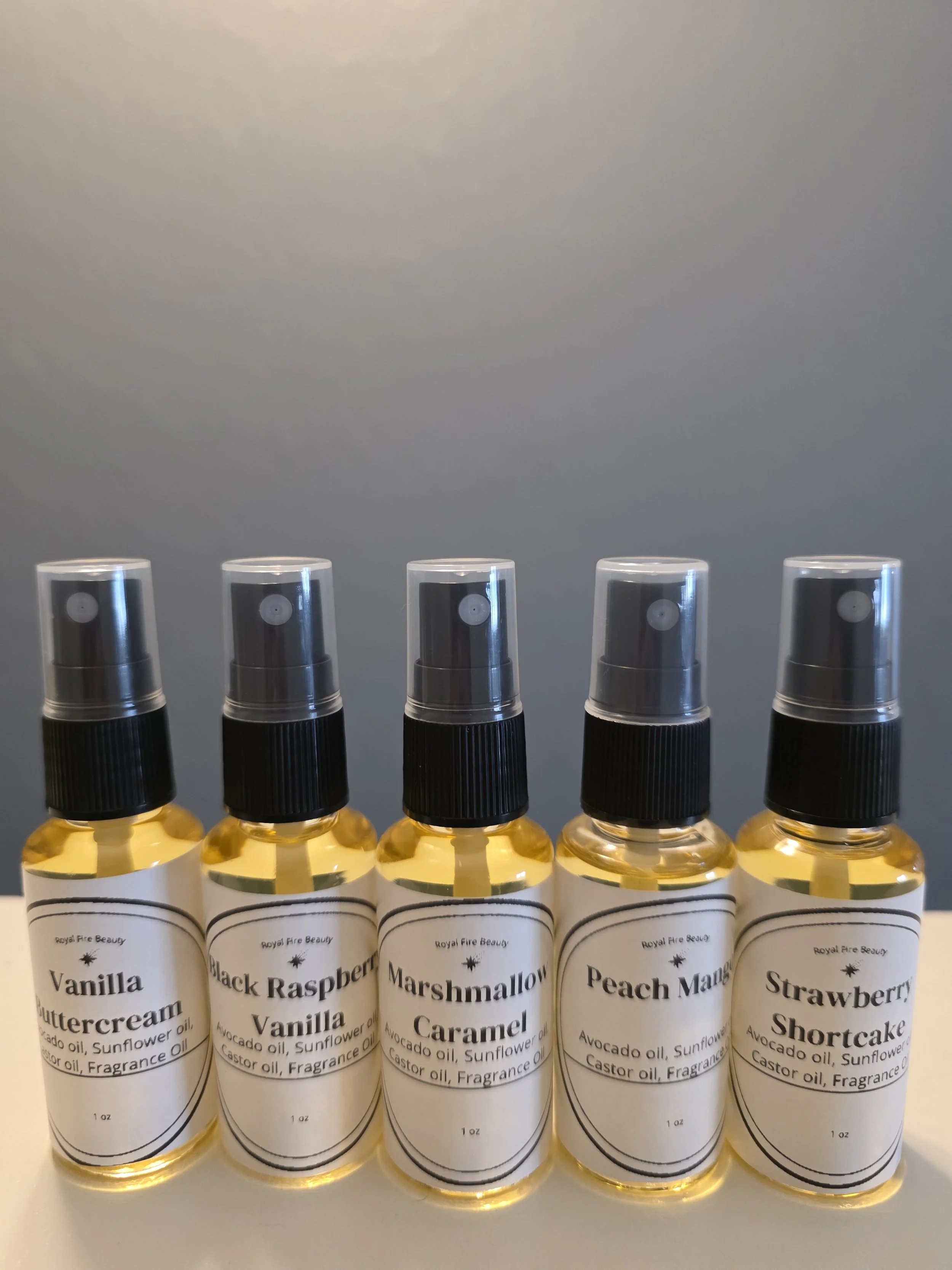 Can’t decide which body oil scent to get? Don't want to make a full committment before you can smell them all? Our sampler set is for you. You'll get 5 of our scents in 1 oz bottles for a low price.